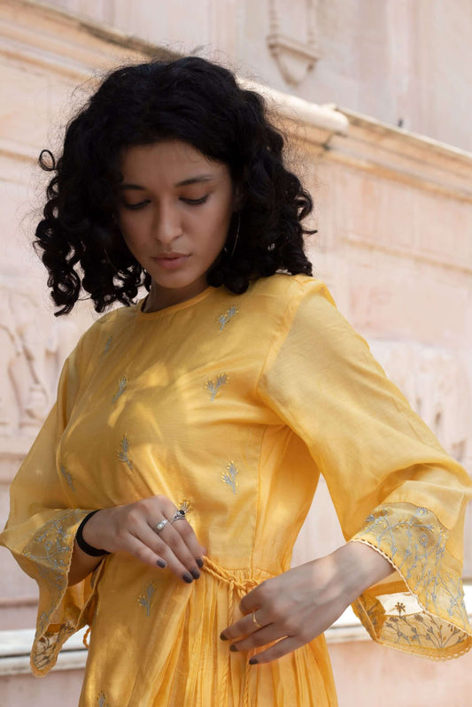 PASTEL YELLOW EMBROIDERED DRESS