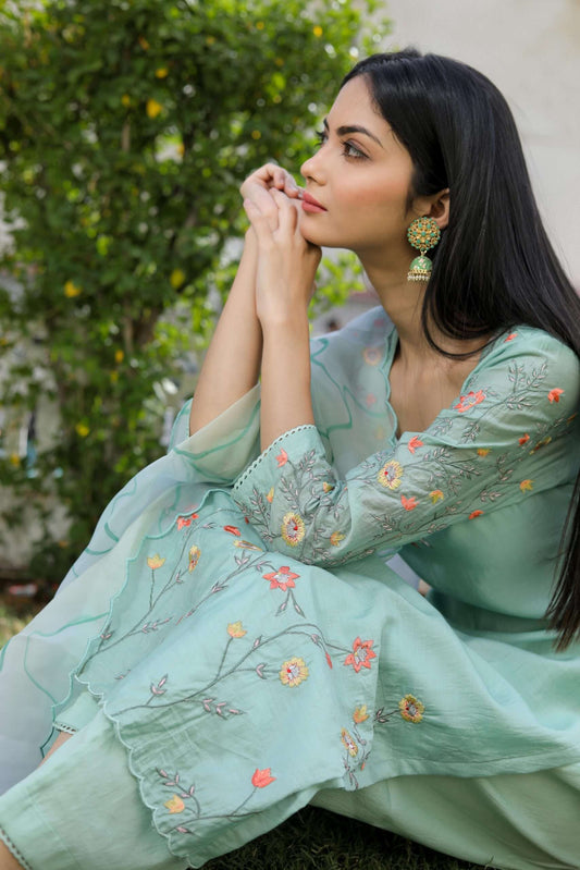 Emerald Forest Hand Embroidered Kurta Set of 3