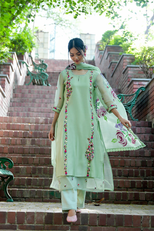 MINT GREEN ROSE KURTA SET OF 3