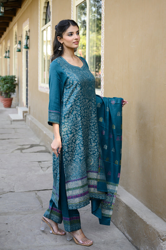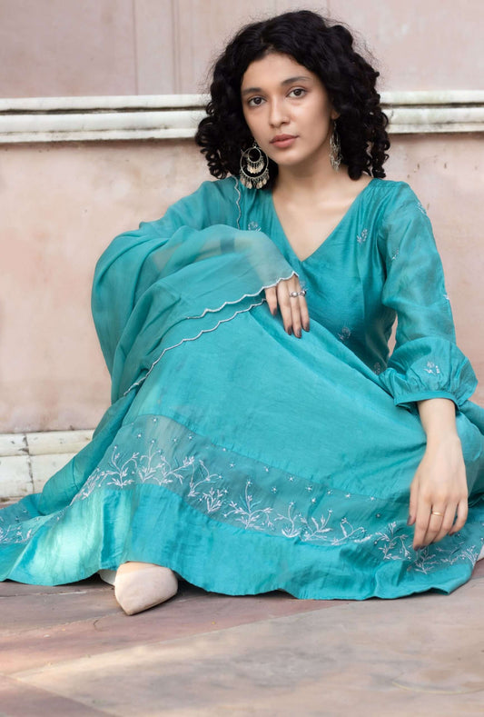 TEAL EMBROIDERED KURTA SET OF 2