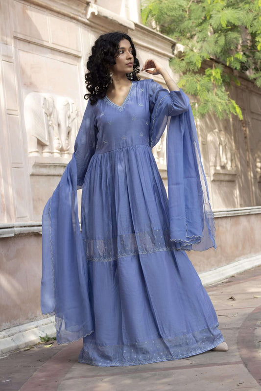 CORNFLOWER BLUE EMBROIDERED KURTA SET OF 2