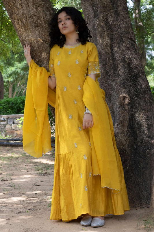 MUSTARD EMBROIDERED KURTA SET OF 2