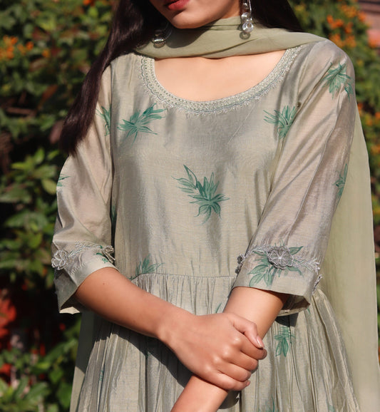 SAGE GREEN HANDPAINTED KURTA SET OF 3