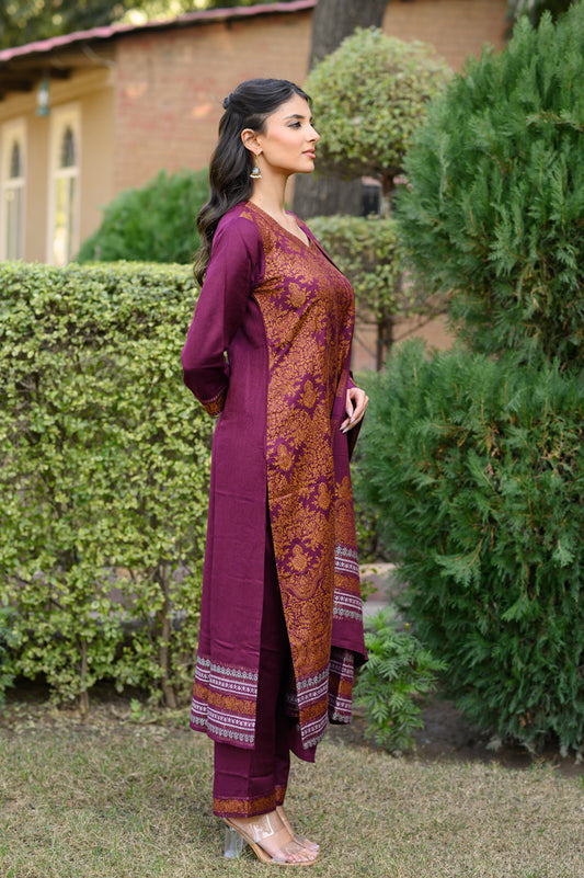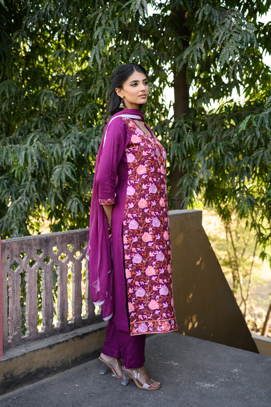 PURPLE EMBROIDERED KURTA SET OF 3