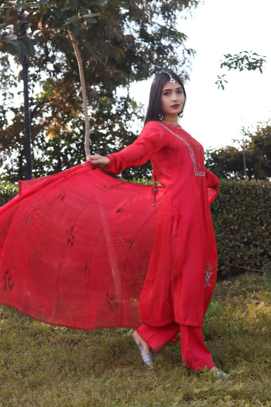 Poppy Red Kurta Set of 3